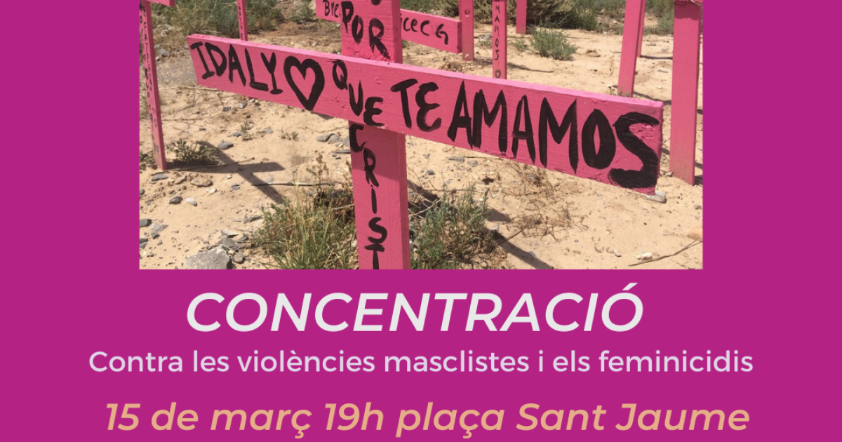 El proper tercer dilluns, com cada mes, ens concentrarem a la plaça Sant Jaume per recordar les dones que han estat assassinades a mans masclistes, i per exigir una vida lliure de violències.