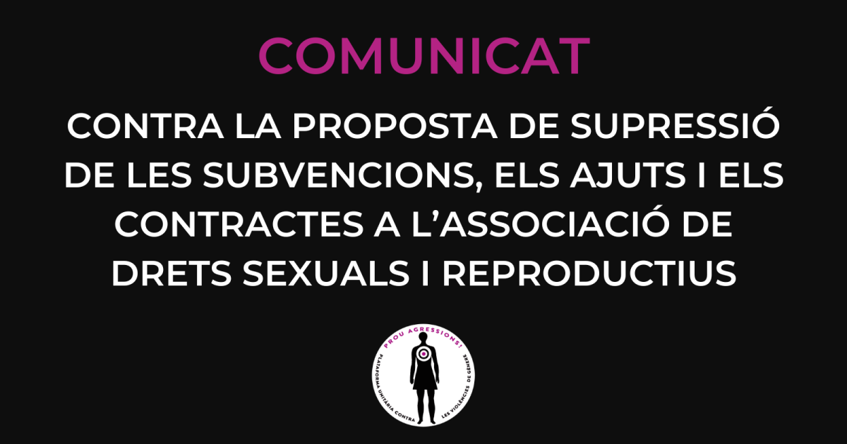 Des de la Plataforma Unitària Contra les Violències de Gènere, volem fer d'altaveu del comunicat de l'Associació de Drets Sexuals i Reproductius de rebuig a la proposta de resolució sobre la supressió de les seves subvencions, ajuts i contractes.