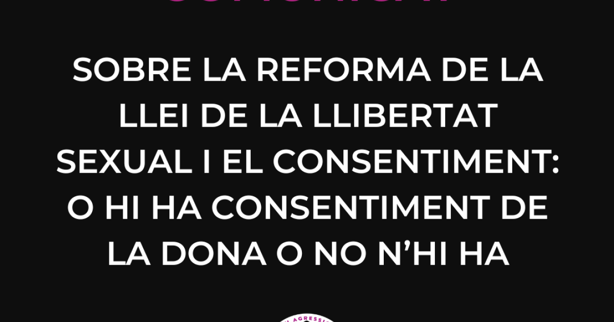 Per alçar la nostra veu, compartim el següent comunicat sobre la reforma d'aquesta llei. Perquè volem que imperi un nou sentit comú, social, polític i jurídic, on tota relació sexual no consentida, per la raó que sigui, es consideri una agressió sexual.