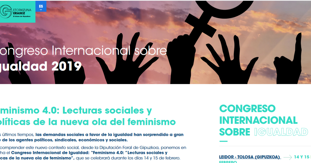 A menys d’un mes de la segona vaga general feminista, que tindrà lloc el 8 de març d’enguany, la Diputació Foral de Guipúscoa organitza aquest cap de setmana el Congrés Internacional d’Igualtat “Feminisme 4.0: ”Lectures socials i polítiques de la nova onada del feminisme”.
