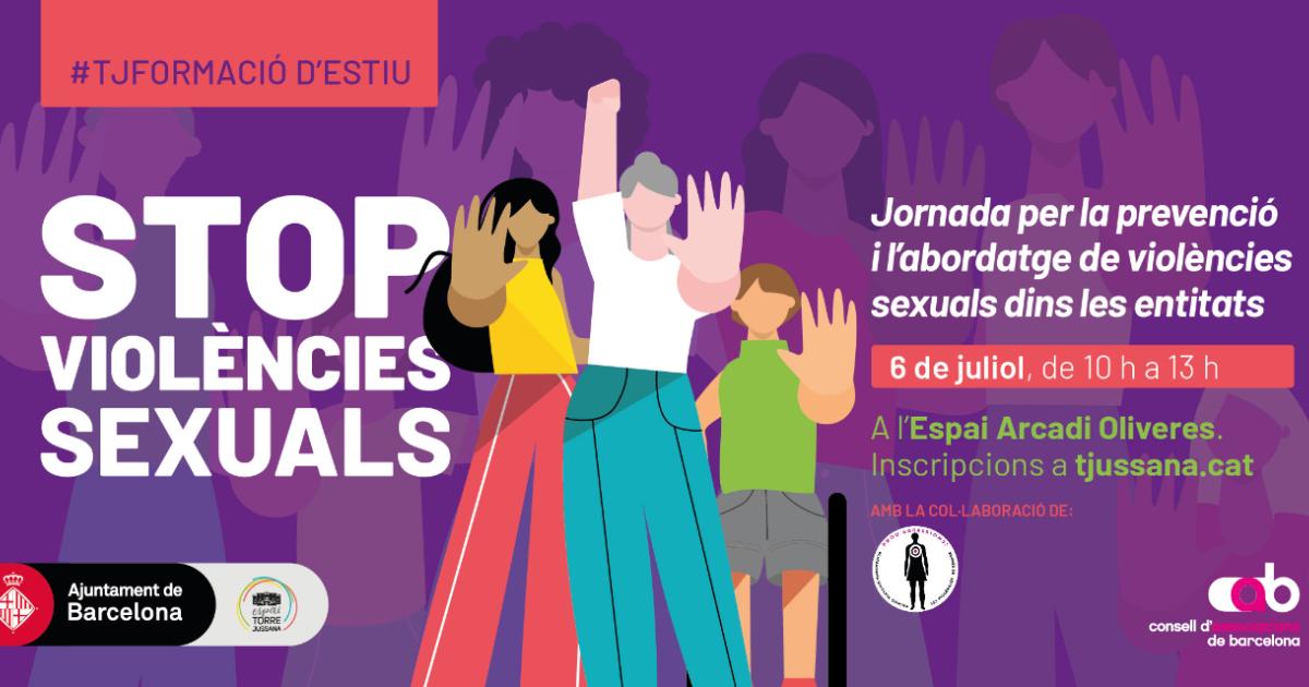 El proper 6 de juliol organitzem amb Torre Jussana una jornada reflexiva i punyent sobre 'Prevenció i abordatge de violències sexuals dins les entitats'. Una formació d’estiu, adreçada a les entitats i col·lectius sense ànim de lucre de la ciutat, on enguany es treballarà de forma conjunta per dir: Stop violències sexuals! Les jornades tindran lloc a l'espai Arcadi Oliveres de Torre Jussana