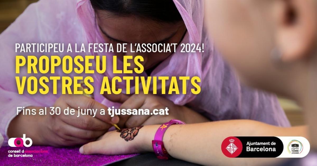 S'apropa la Festa de l’Associa’t 2024 i ens agradaria molt comptar amb vosaltres. L'esdeveniment, coproduït per Torre Jussana i el Servei d’Acció Comunitària amb col·laboració de la Plataforma, es proposa donar a conèixer el teixit associatiu de Barcelona durant les festes de la Mercè, els dies 21, 22 i 24 de setembre. Per fer-ho, ens facilita diferents espais de la ciutat a les entitats perquè organitzem activitats que apropin la nostra realitat a la ciutadania.