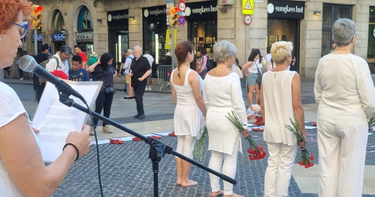 La sisena convocatòria #ProuFeminicidis de l'any l'hem organitzat amb les companyes de Dones de blanc, un grup d'expressió corporal que va néixer l'any 2003 de la mà de la Plataforma Unitària Contra les Violències de Gènere. Es tracta d'un grup estable de treball amb l'objectiu d'aprofundir en la consciència corporal i acompanyar en determinats moments la lluita que porta a terme la Plataforma. Amb trobades setmanals, cada dilluns a la tarda des de fa vint-i-dos anys, comparteixen pensaments i idees entorn a la violència vers les dones per tal de transmetre-les a la gent a través de la dansa. També ens ha acompanyat l’artista Carolina Merlo, compositora, cantant i guitarrista, amb la seva fantàstica seva veu i música.