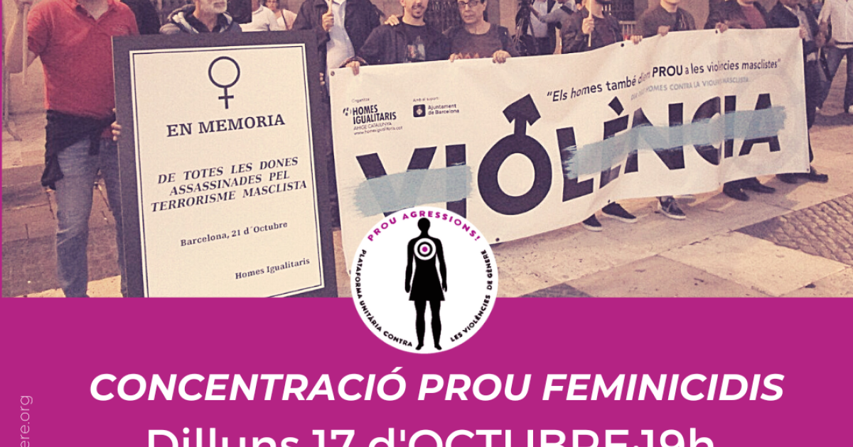 A les 19h concentració de rebuig contra els feminicidis amb la lectura del manifest a càrrec d' HOMES IGUALITARIS.
