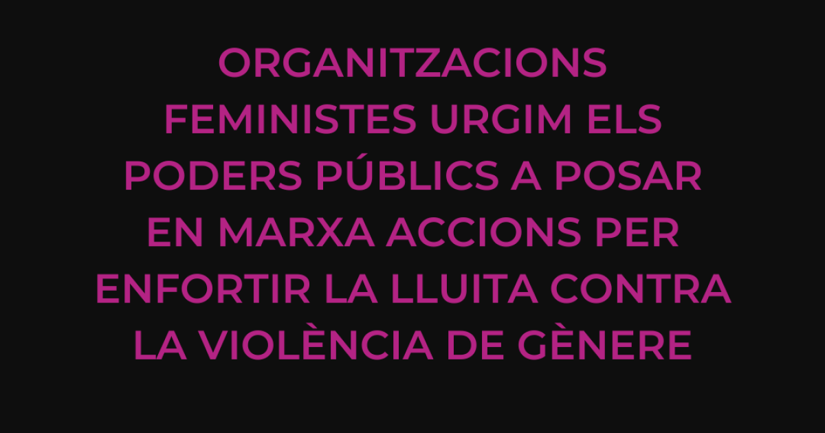 És posen de manifest algunes de les mesures que des de les organitzacions feministes reclamem a través d'aquest comunicat, com la necessitat d'una avaluació general de les polítiques en matèria de violència de gènere, com les relatives a la avaluació del risc, prevenció i protecció de les víctimes o recollida de dades estadístiques, o que els programes relacionats amb latenció a dones víctimes comptin amb el suport econòmic adequat, entre altres.