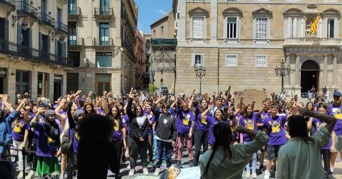 Després d'esmorzar juntes al pati de l'edifici, les joves van participar als tallers de punt lila, creació de pancartes, samarretes i pintura, i van poder expressar els seus reclams per una societat més justa i feminista en un photocall reivindicatiu. Amb els cartells llestos i agafant megàfons i xiulets, vam sortir al carrer i vam fer una rua fins la plaça Sant Jaume, per fer sentir la nostra veu a l'espai públic. La plaça, va ser l'escenari del tancament de la trobada amb el ball col·lectiu de la coreografia 'Estima't', una cançó interpretada per l'artista Bren Ivangelina, tocada per Dona Cançó i coreografiada per la companyia de dansa Las dos orejas.