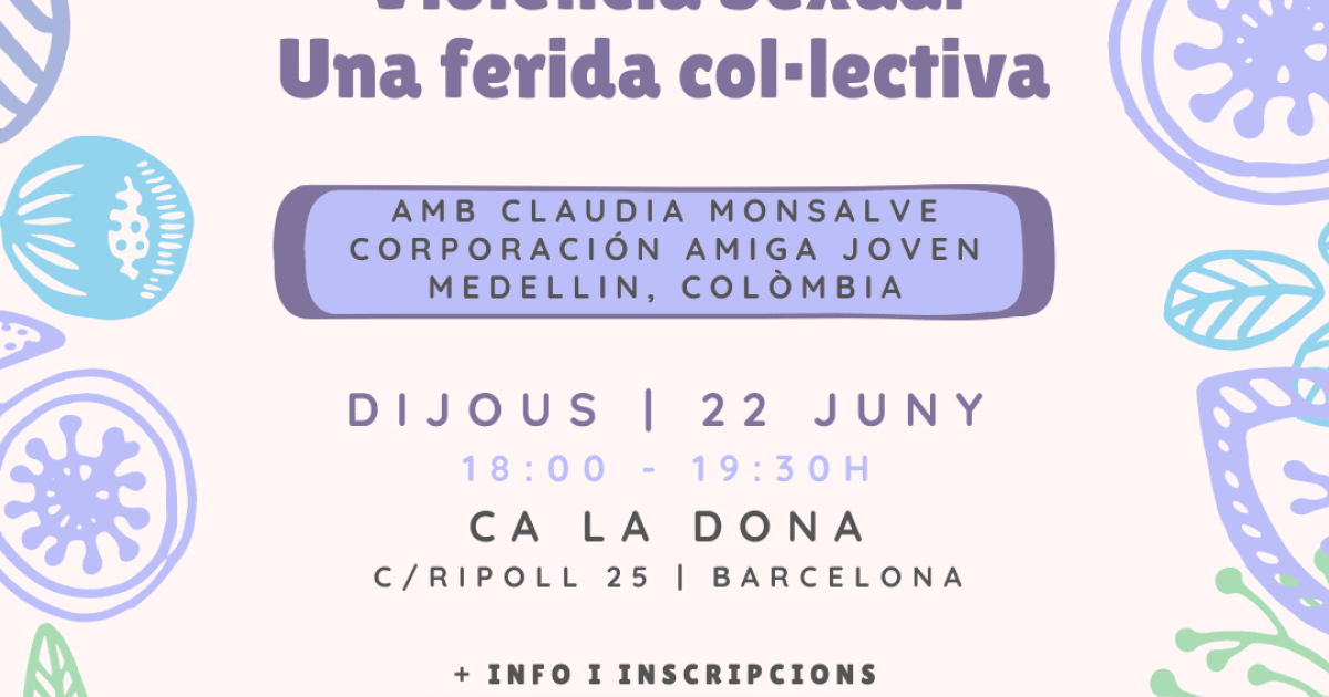 El proper dijous 22 de juny a les 18h organitzem el taller Violència sexual, una ferida col·lectiva a Ca la dona. Un espai no mixte (destinat a dones) on des d'una metodologia vivencial treballarem els missatges i informacions rebudes pels nostres entorns (família, escola, mitjans, societat, església, ciència) sobre el cos, la sexualitat, el plaer, obrint una conversa que identifiqui els missatges rebuts, les contradiccions, la justificació de les violències cap als nostres cossos i la sexualitat, identificant d'on vénen, i per què s'han passat com un llegat de generació en generació.
